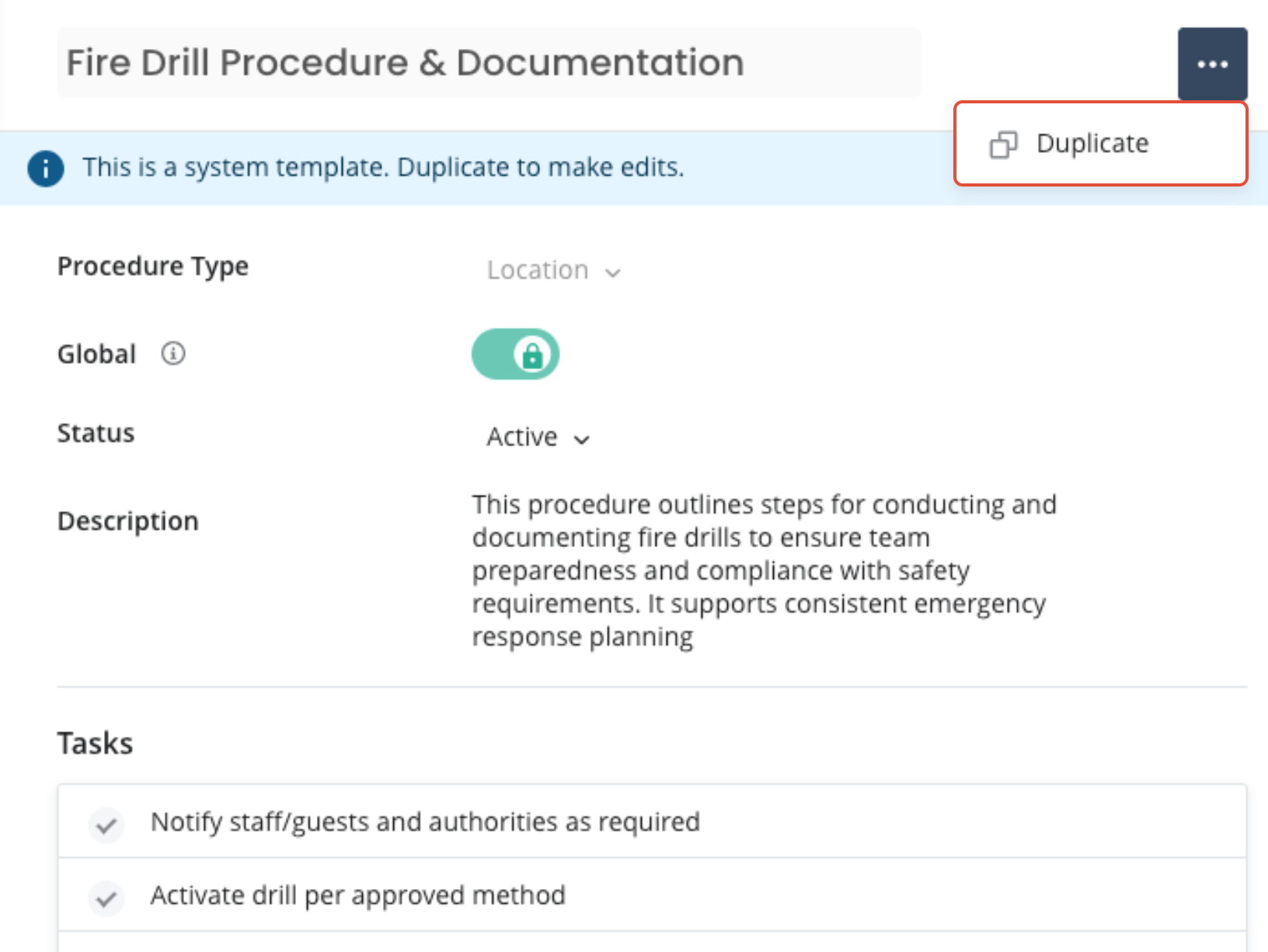 System Templates are pre-built maintenance checklists that Inn-Flow adds to your Procedures page within your Facilities account automatically.