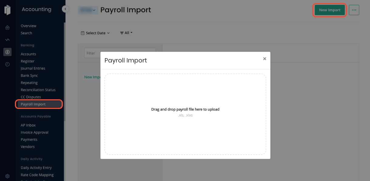 To Import the Payroll Template once you have completed it, navigate to Accounting > Payroll Import > Select the HID that you will be importing for.