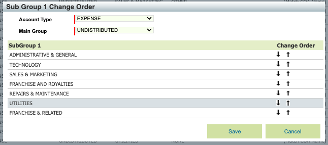 Then click on the blue text button, "Change Order," next to the Sub Group 1 called Utilities.