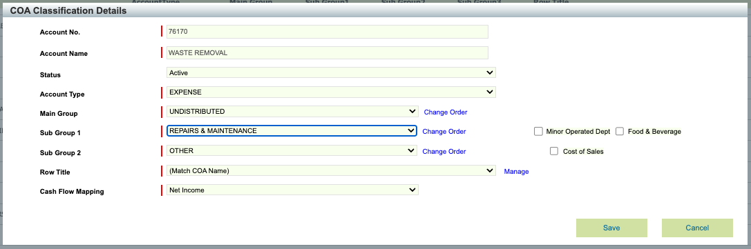 Departments will need to be renamed, and Chart of Accounts will also need to be moved from one department to another, like Rooms to IT, and Maintenance to Energy, Water and Waste. This can easily be done within the Chart of Accounts page then by going to the COA Classification page.