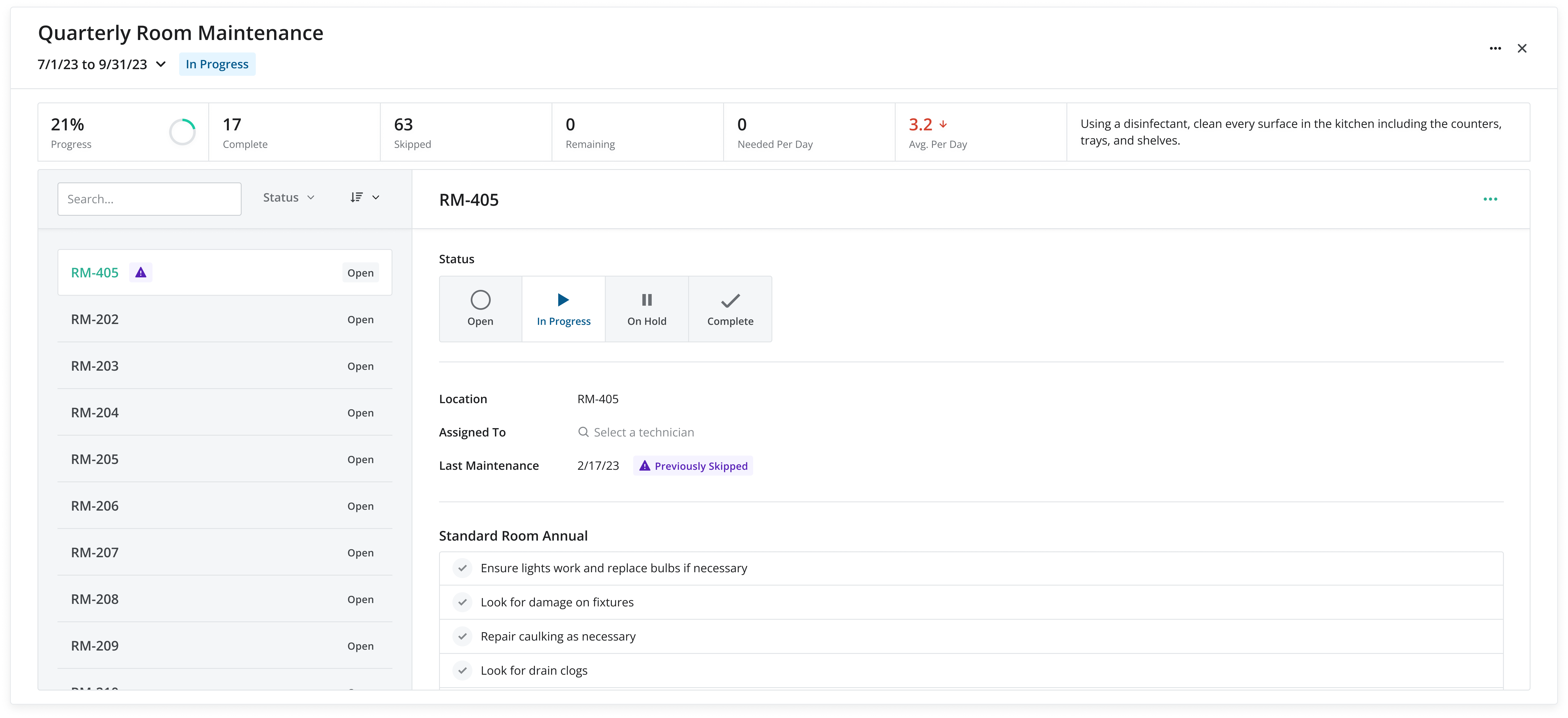 - Start with 3–5 schedules (monthly HVAC, quarterly guest room checks).