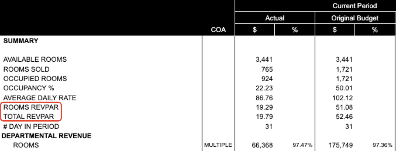 The existing RevPAR line item has been renamed to Rooms RevPAR to clarify that it is based on room revenue. This update is related to the label only; the calculation remains unchanged.