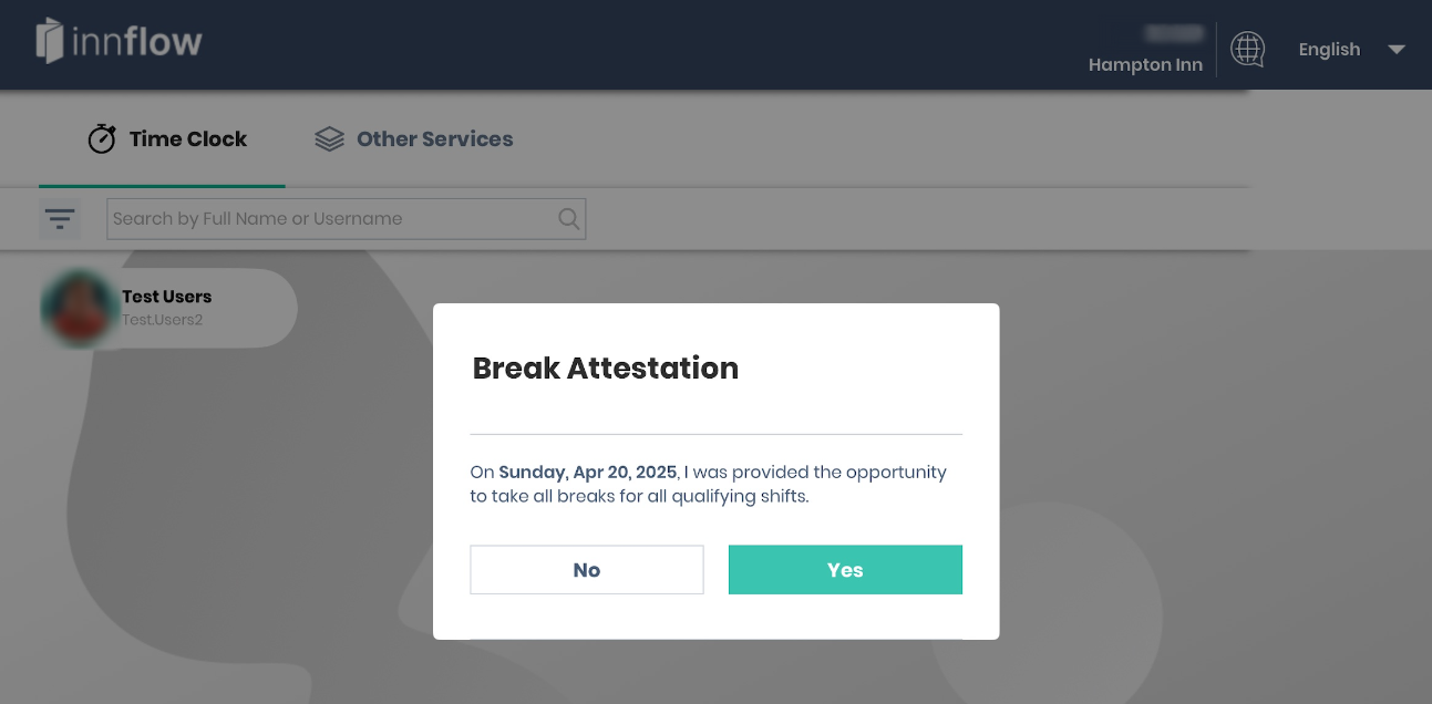 Inn‑Flow’s iPad Time Clock includes built‑in timecard review and attestation steps to support accurate payroll processing and compliance with federal and state labor laws. These steps give employees visibility into their punches and provide managers with clear signals when review or correction is needed.