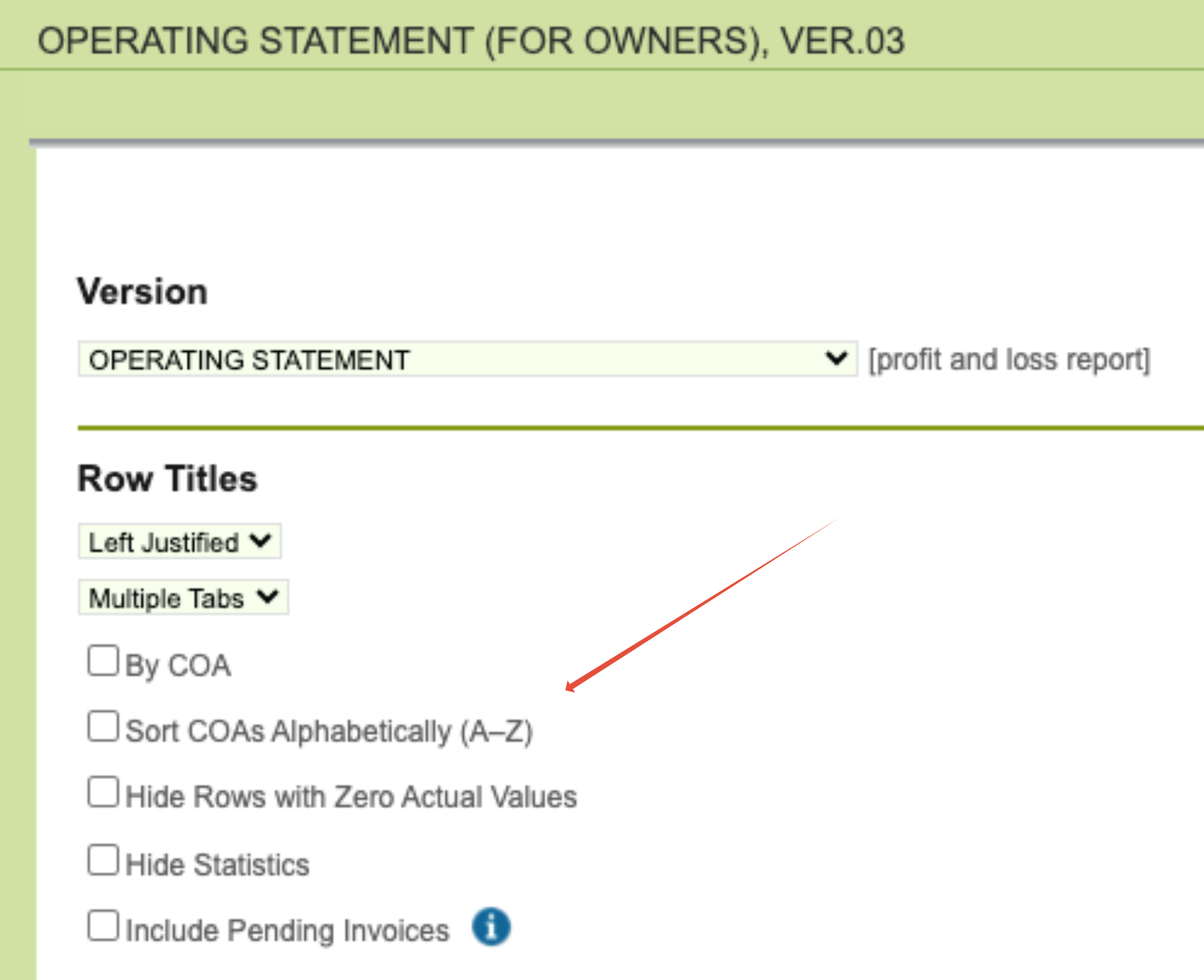 Accounting - Reports: Operating Statement for Owners – Alphabetical COA Sorting